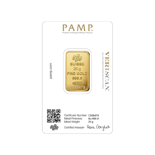 PAMP 20 Gram Gold 9999 Fortuna Minted Bar