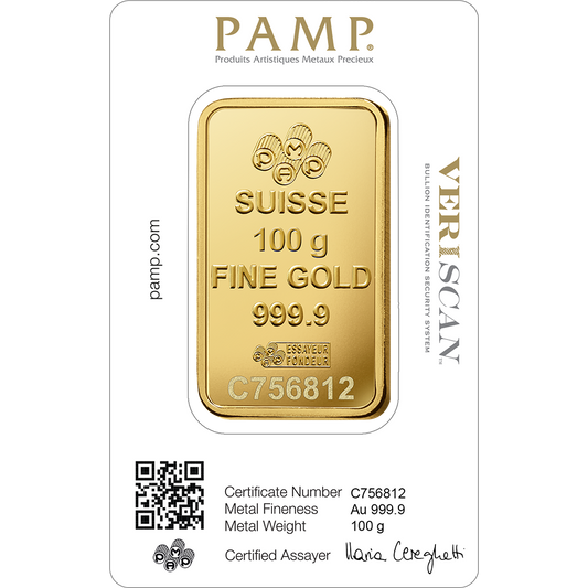 PAMP 100 Gram Gold 9999 Fortuna Minted Bar