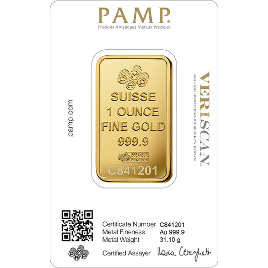PAMP 1 Ounce Gold 9999 Fortuna Minted Bar