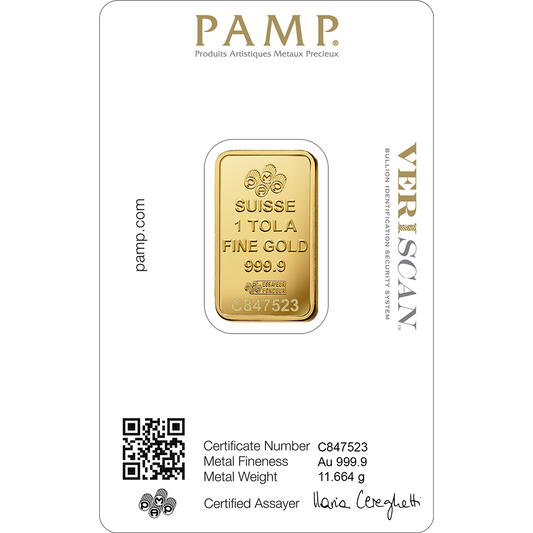 PAMP 1 Tola Gold 9999 Fortuna Minted Bar