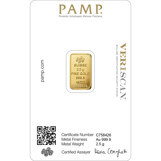 PAMP 2.5 Gram Gold 9999 Fortuna Minted Bar