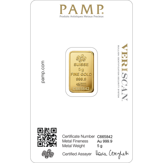 PAMP 5 Gram Gold 9999 Fortuna Minted Bar