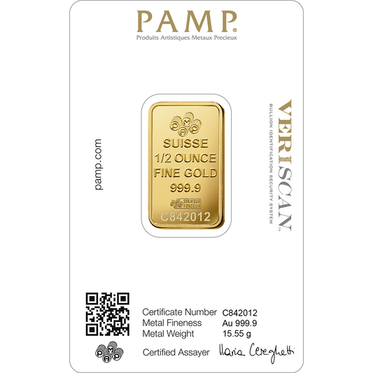 PAMP 0.5 Ounce Gold 9999 Fortuna Minted Bar