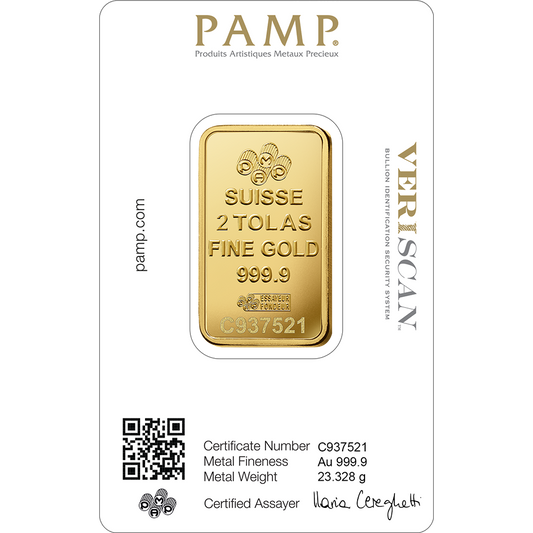 PAMP 2 Tola Gold 9999 Fortuna Minted Bar
