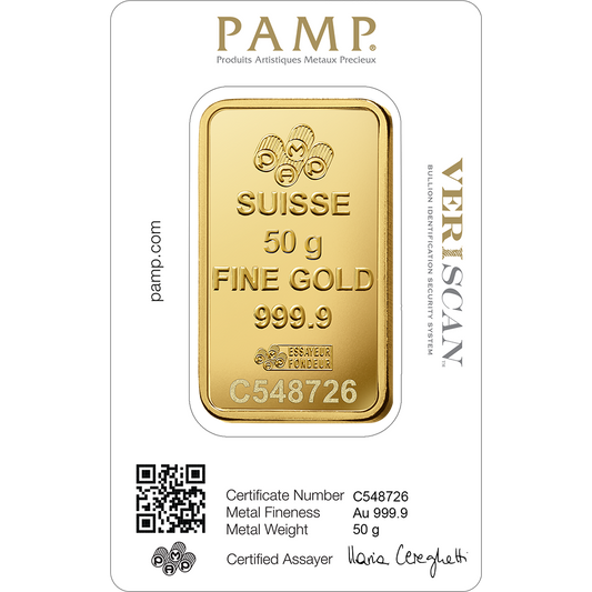 PAMP 50 Gram Gold 9999 Fortuna Minted Bar